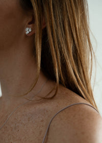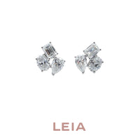 Un diseño atemporal y elegante. Cada arete presenta tres diamantes de laboratorio en cortes esmeralda, ovalado y pera. El peso total es de 3.5 quilates, montados en oro sólido de 14K. Perfectos para cualquier ocasión.